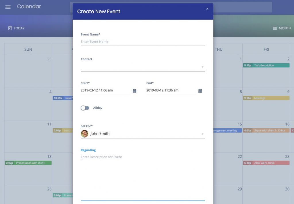 All events scheduled in LeadCron, such as customer meetings or follow up phone calls need not be entered again in the calendar. They are automatically imported to the calendar in LeadCron.